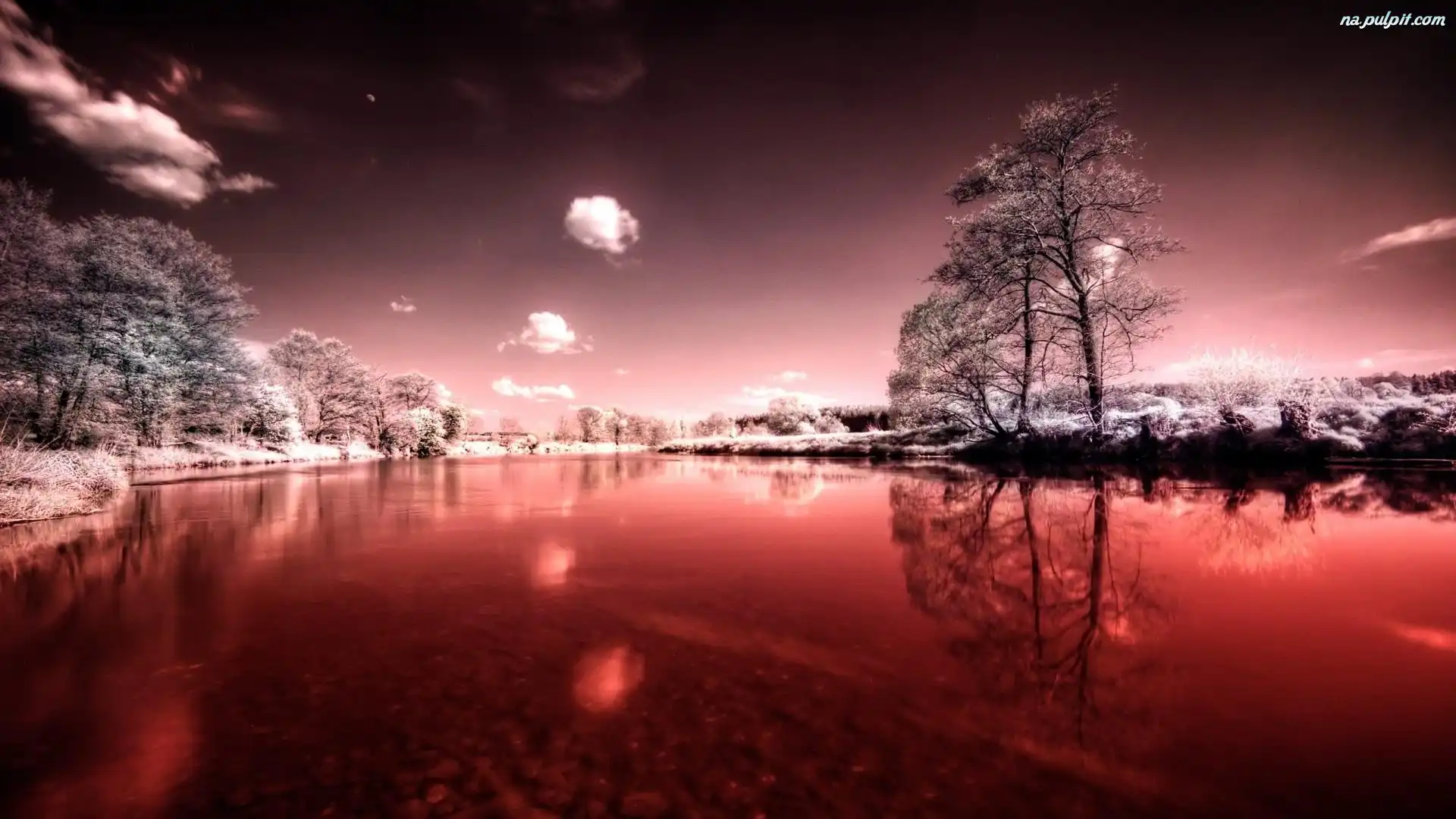 Zima, Rzeka, Czerwona, Drzewa Na Pulpit