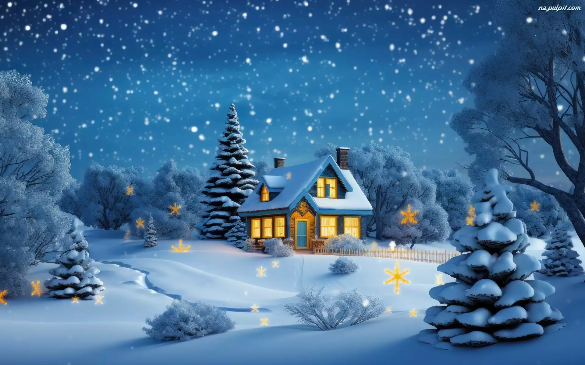 Śnieg, Zima, Dom, Grafika, Drzewa Na Pulpit