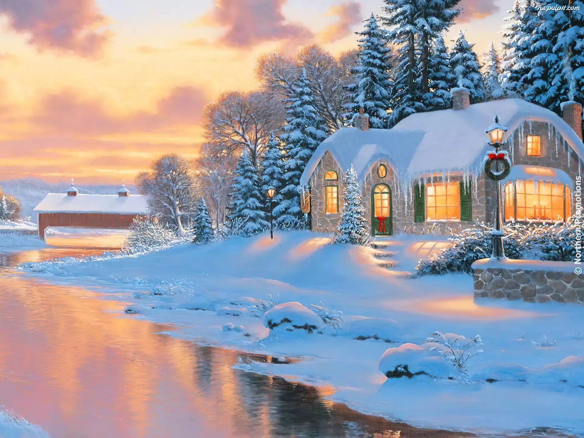Zima, Nad, Dom, Rzeką Na Pulpit