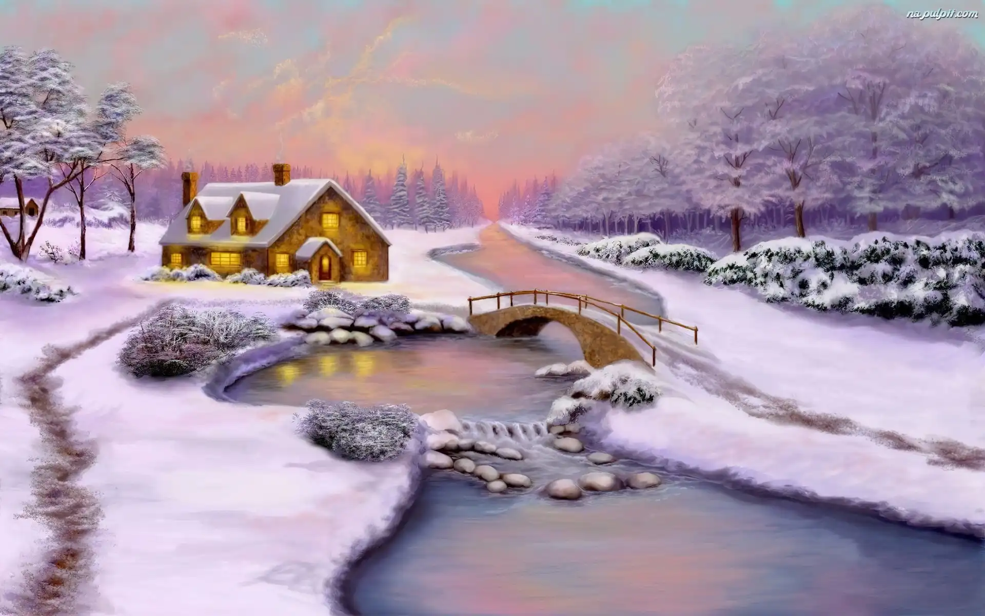 Zima, Rzeczka, Dom, Mostek Na Pulpit