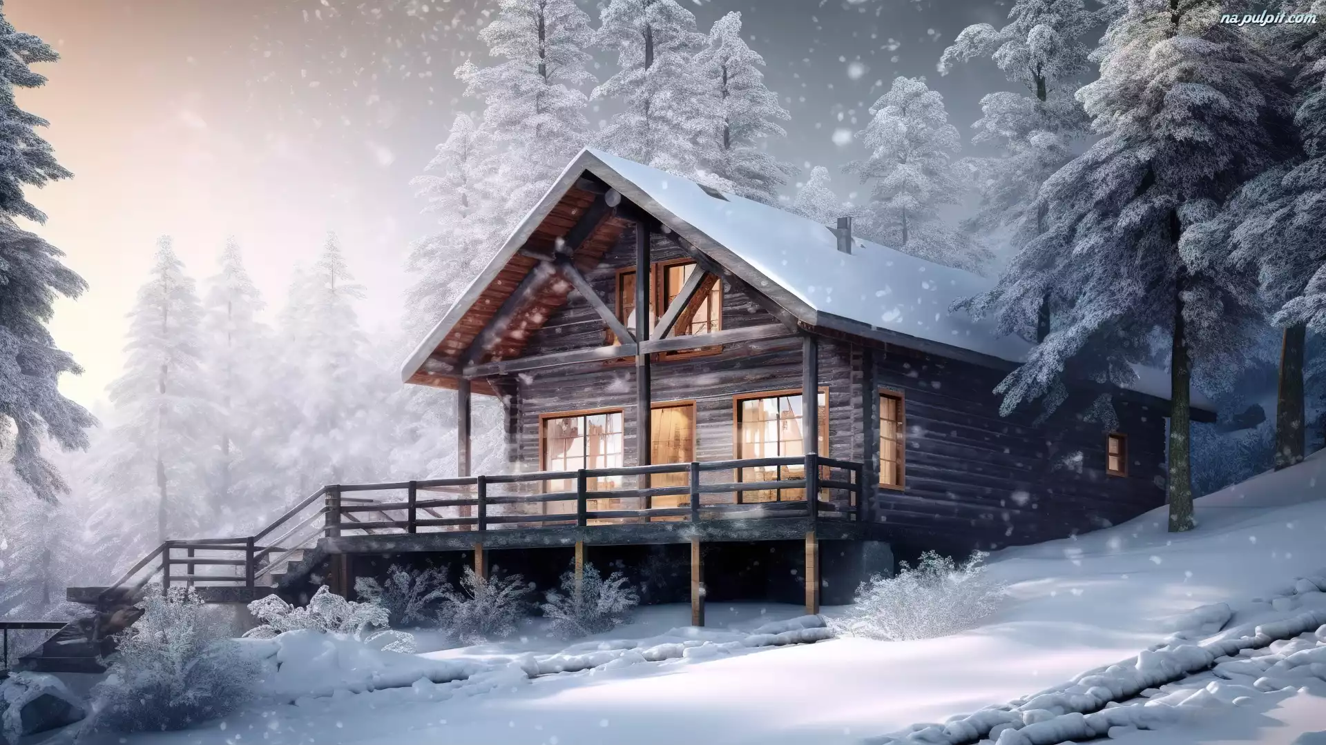 Drzewa, Światła, Dom, Zima, Śnieg, Wzgórze, Ośnieżone Na Pulpit