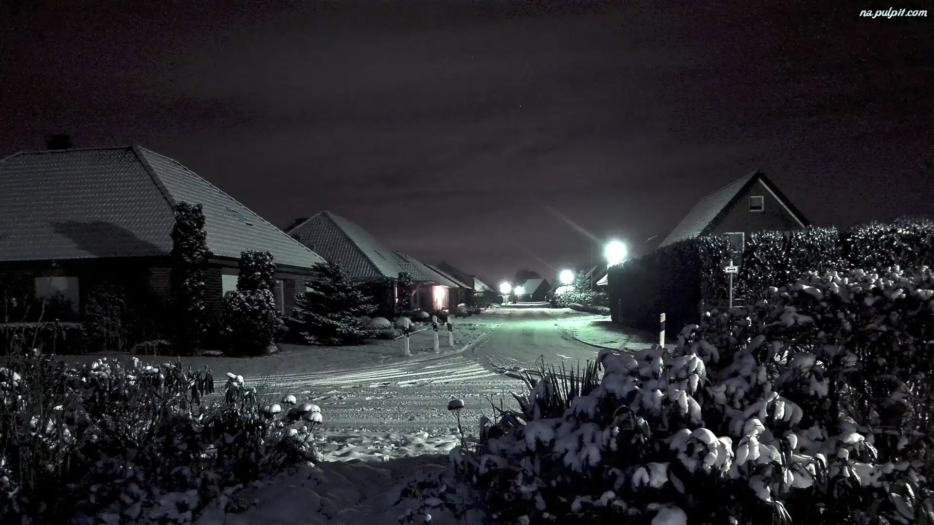 Śnieg, Domki, Nocą, Zima, Światła Na Pulpit
