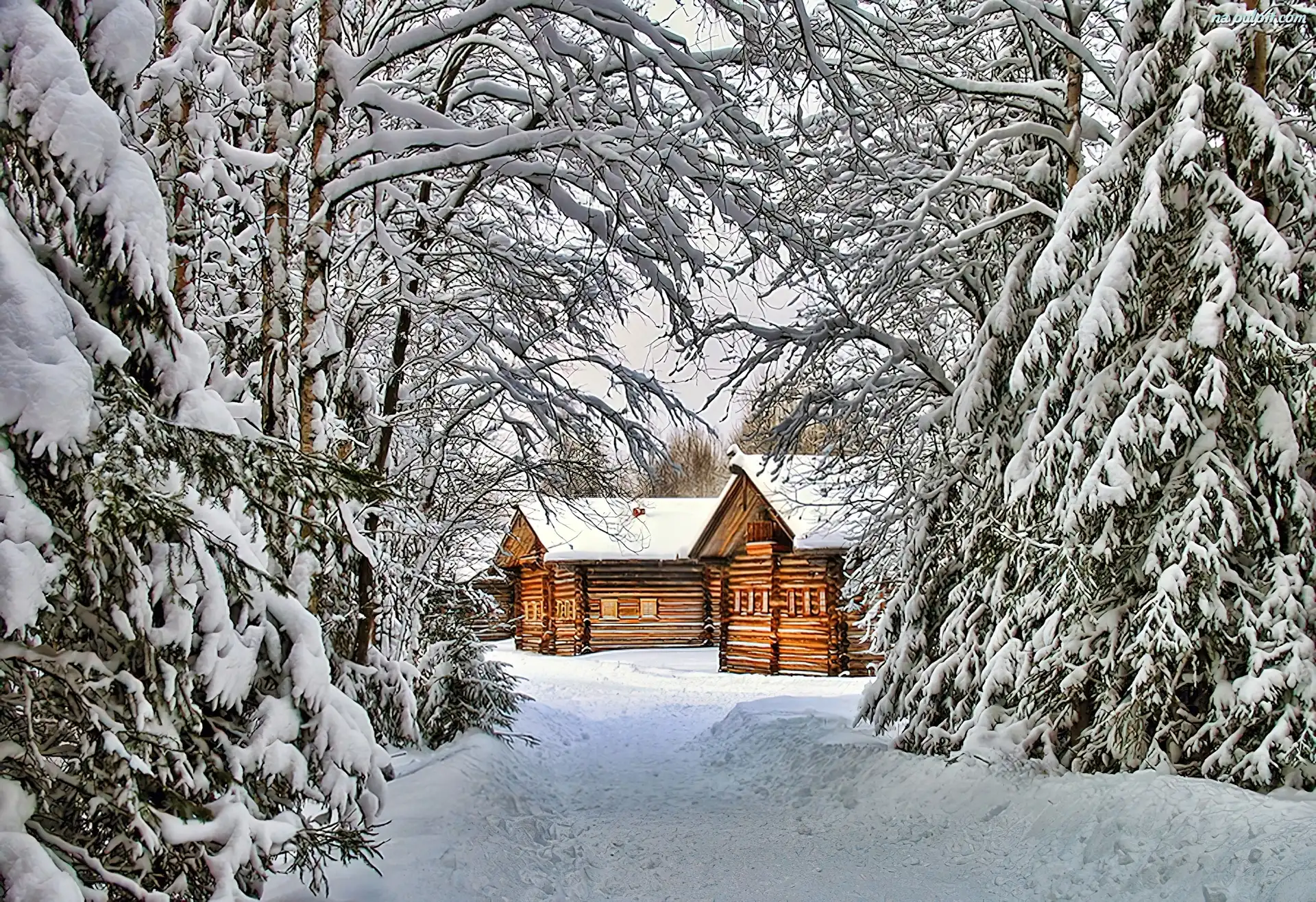 Zima, Ośnieżone, Domki, Choinki Na Pulpit