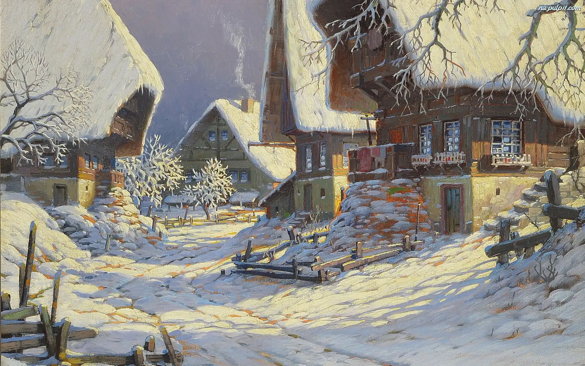 Domy, Zima, Karl Hauptmann, Reprodukcja obrazów, Wieś Na Pulpit