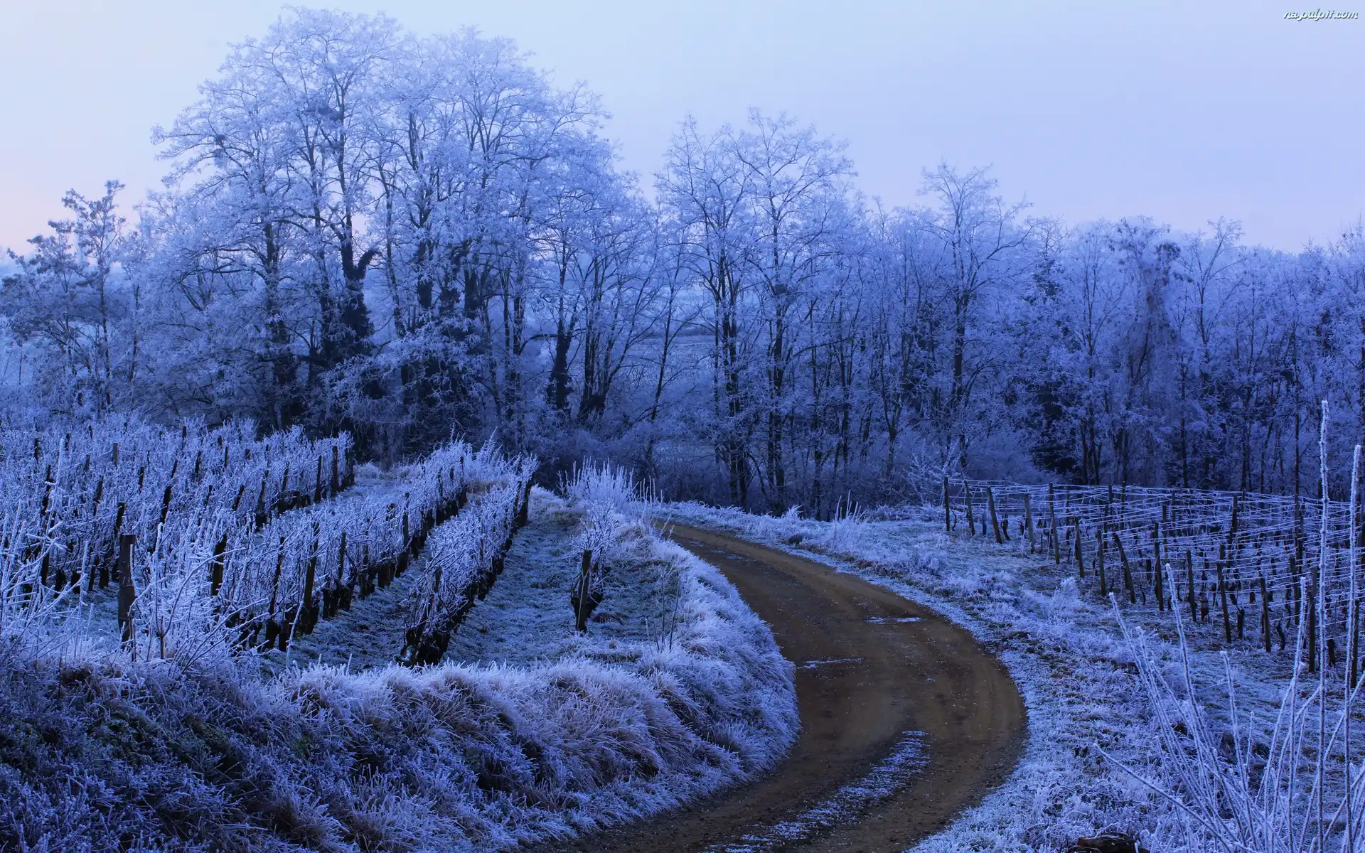 Zima, Drzewa, Droga, Pola Na Pulpit