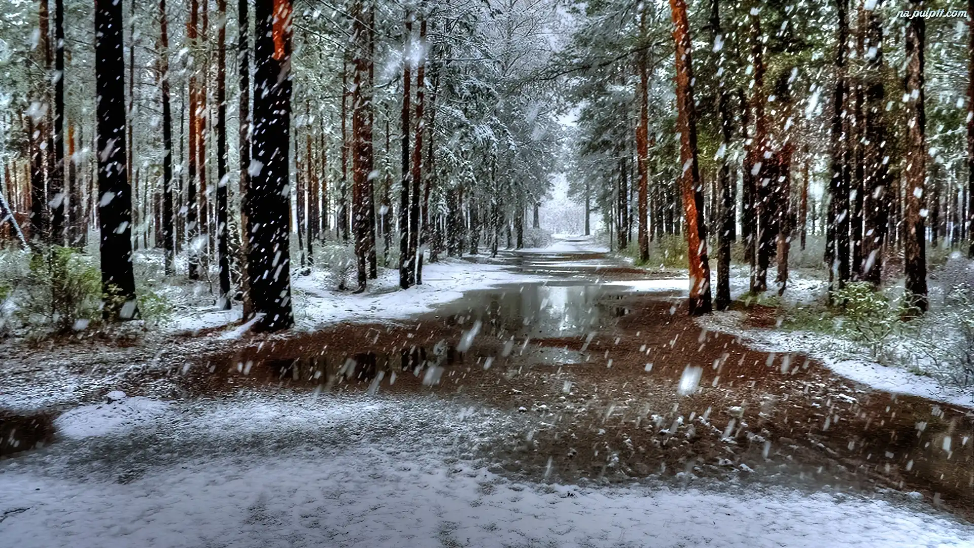 Åšnieg, Droga, Las, Zima, PadajÄ…cy Na Pulpit