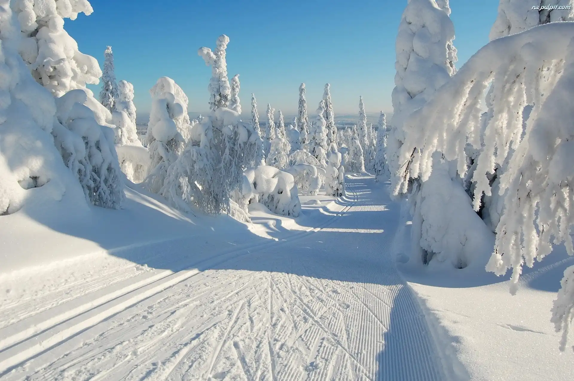 Świerki, Droga, Las, Zima, Ośnieżone Na Pulpit