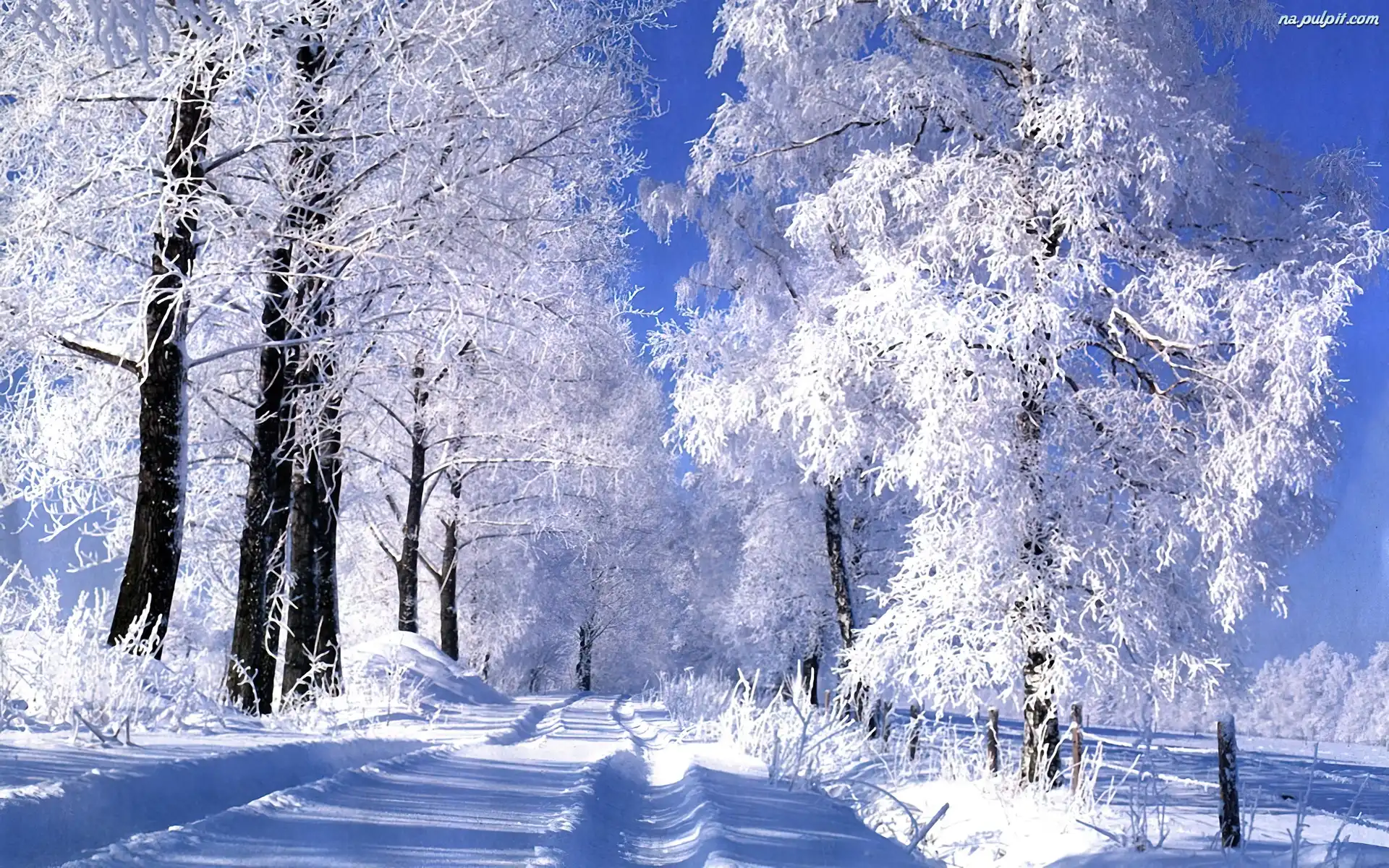 Zima, Ośnieżone, Droga, Drzewa Na Pulpit