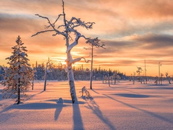 Ośnieżone, Zima, Drzewa, Cień, Bezlistne