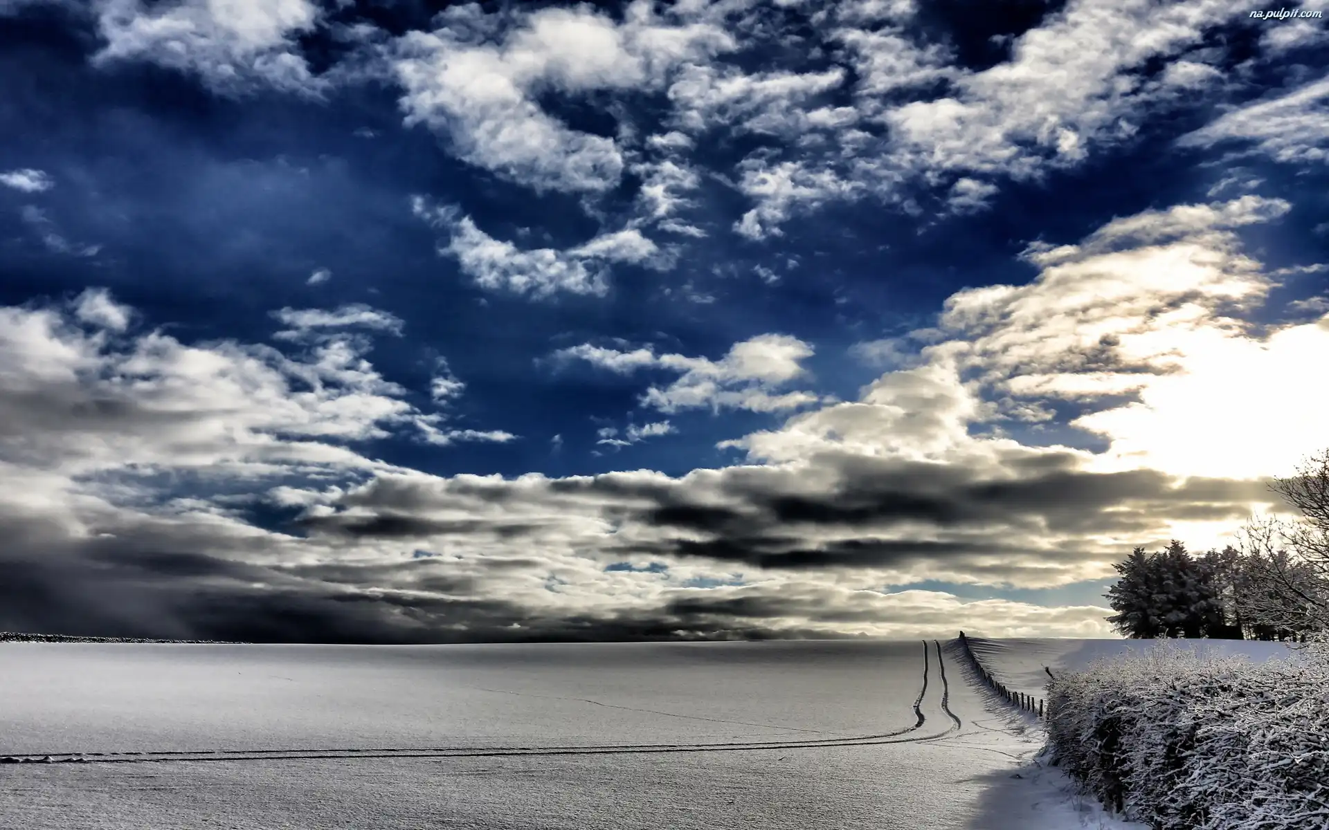 Zima, Chmury, Drzewa, Åšnieg Na Pulpit