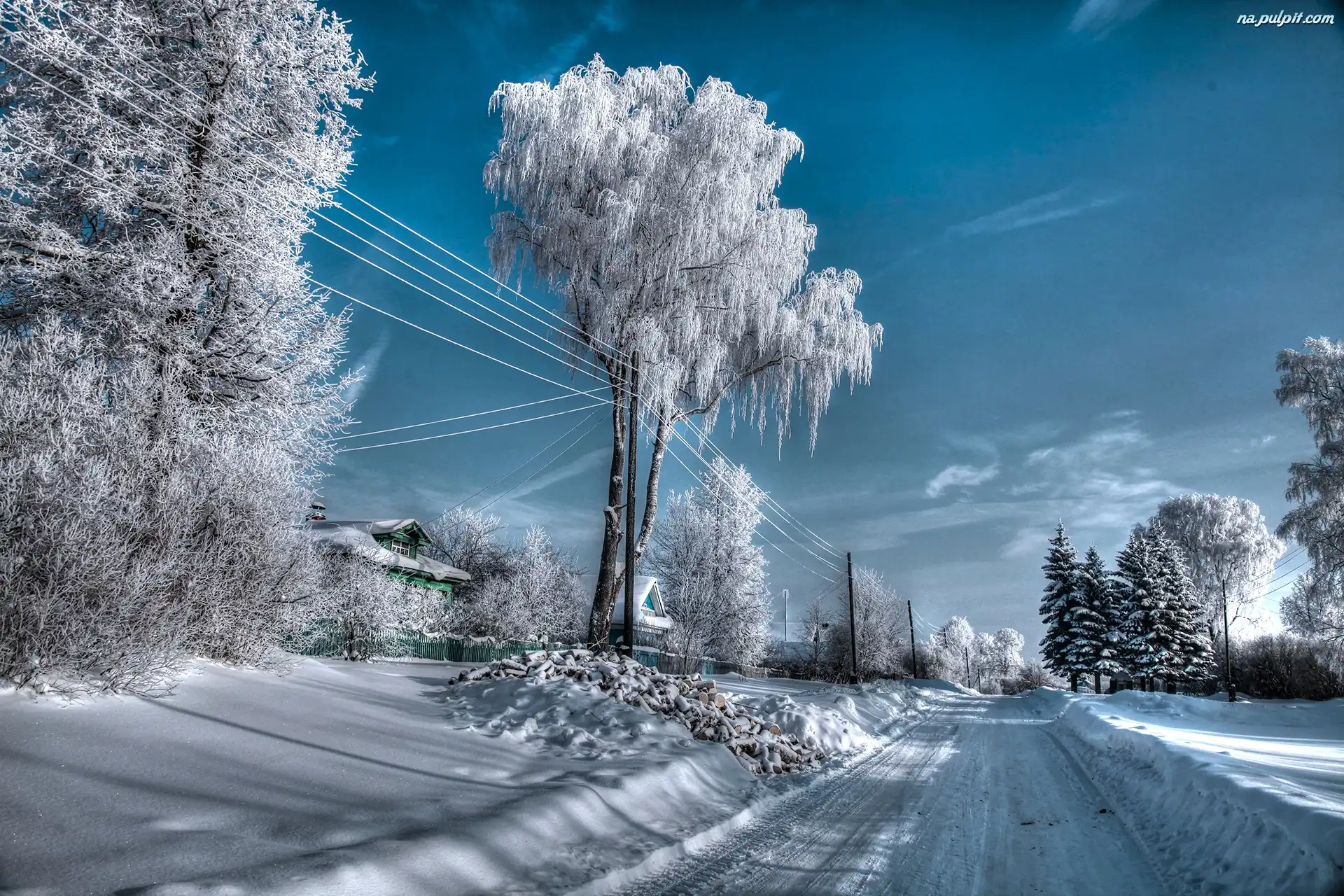 Zima, Droga, Drzewa, Śnieg Na Pulpit