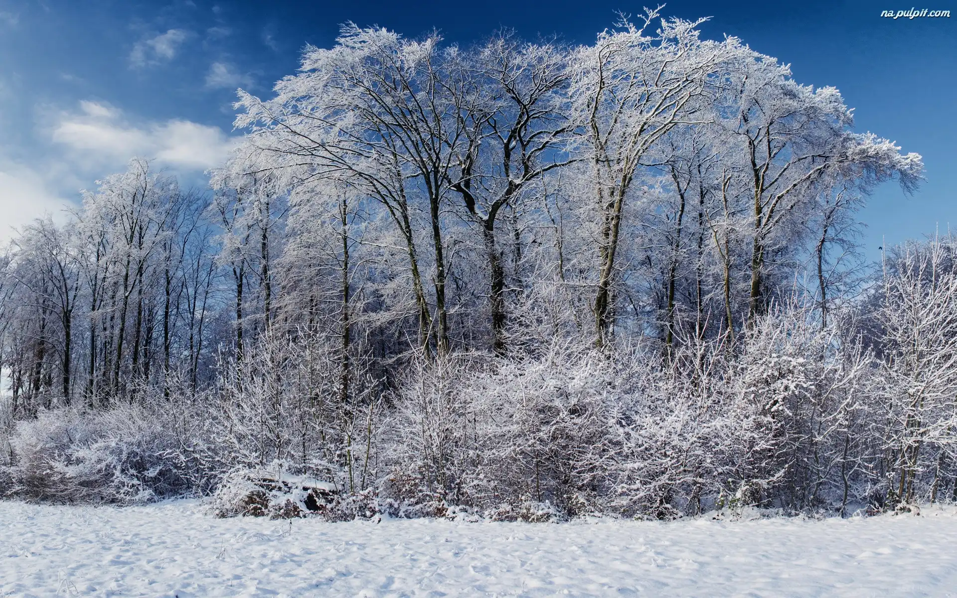 Zima, Krzewy, Drzewa, Åšnieg Na Pulpit