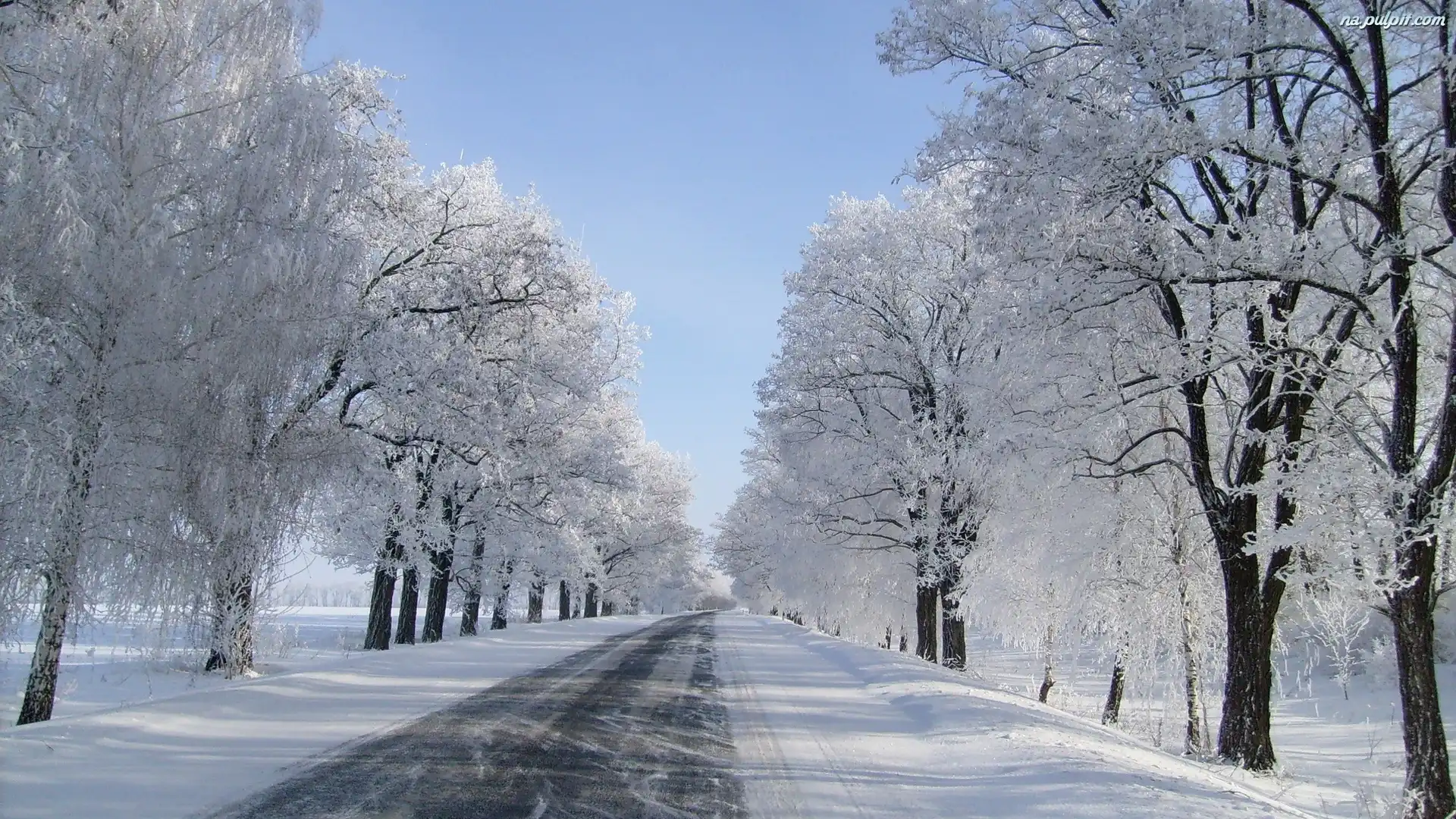 Zima, Åšnieg, Drzewa, Droga