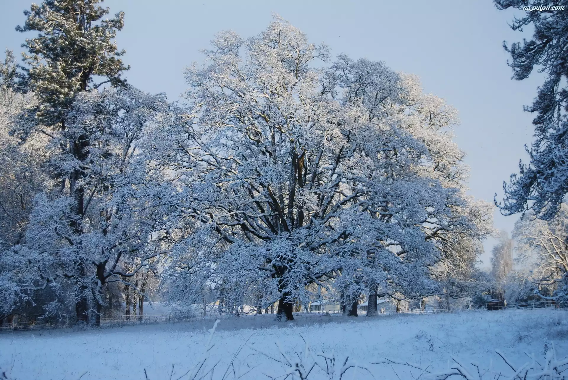 Drzewa, Zima, Ośnieżone