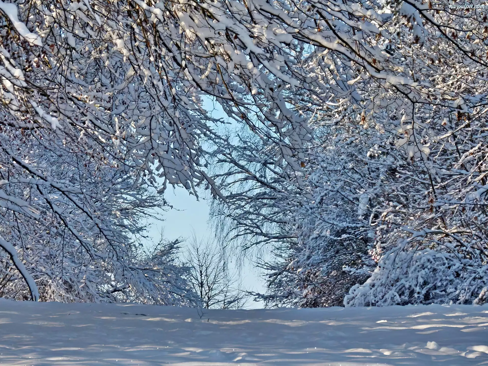 Drzewa, Zima, Ośnieżone Na Pulpit