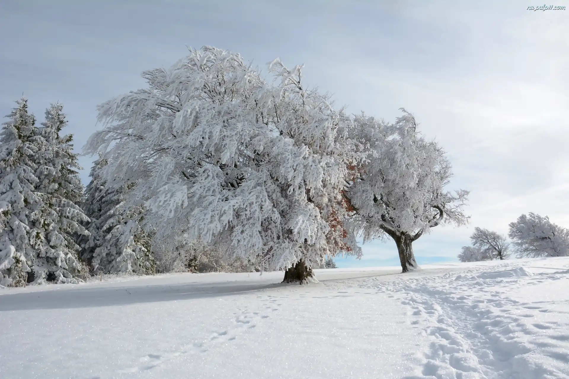 Ścieżka, Drzewa, Ośnieżone, Zima, Śnieg Na Pulpit