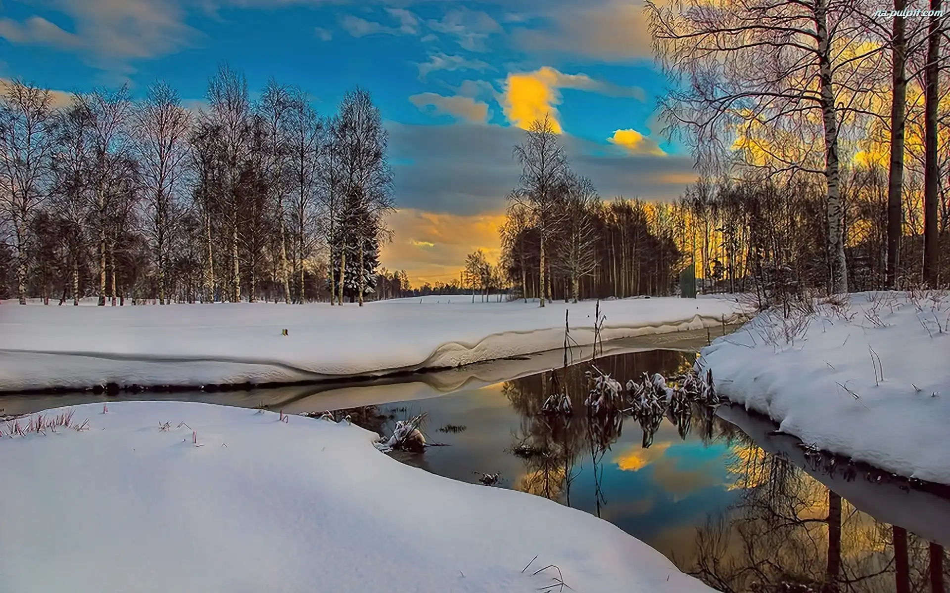 Drzewa, Zima, Rzeka Na Pulpit