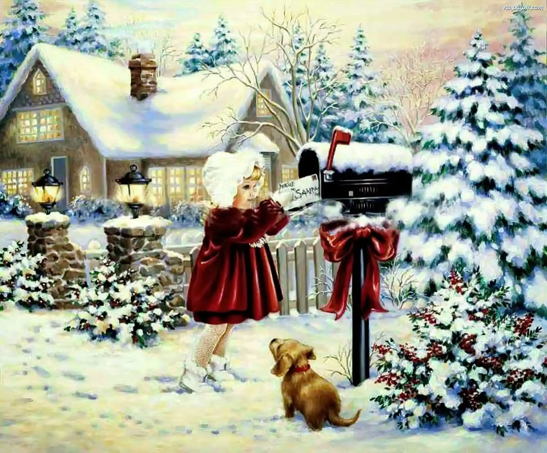Zima, Pocztowa, Skrzynka, Dziewczynka, Piesek Na Pulpit