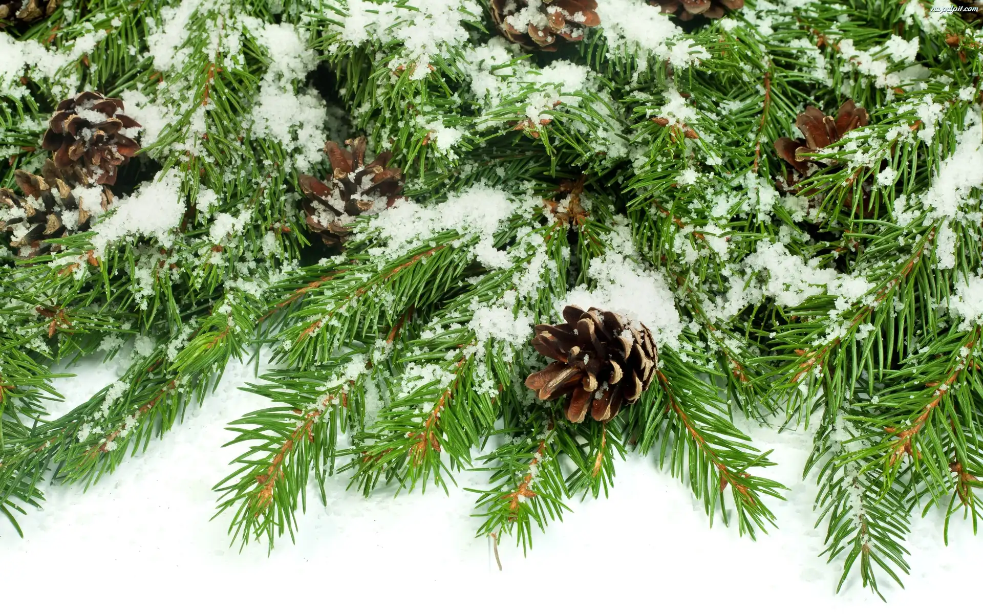 Zima, Szyszki, Świerkowe, Gałązki, Śnieg