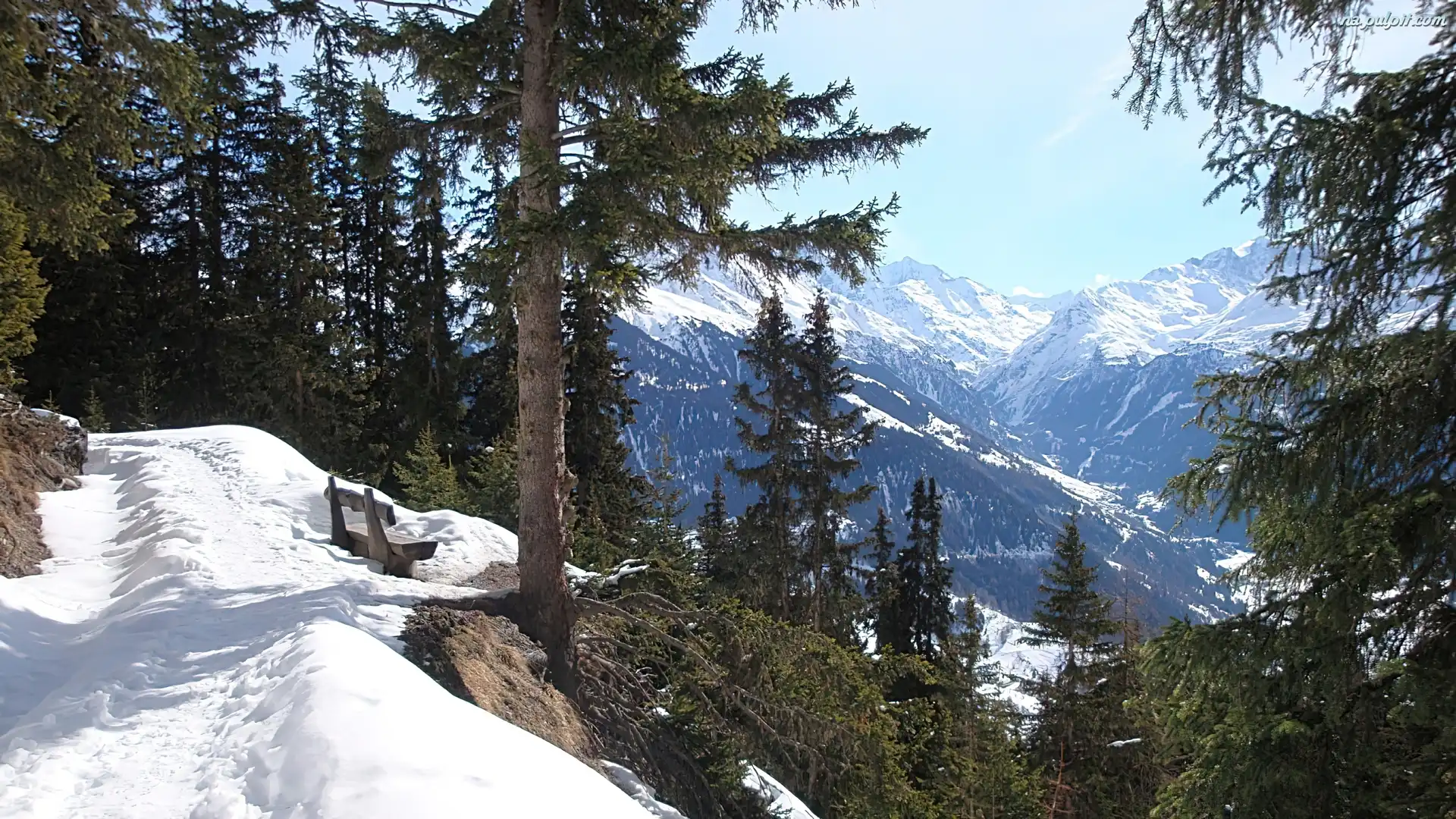 Ławka, Góry, Zima, Las Na Pulpit