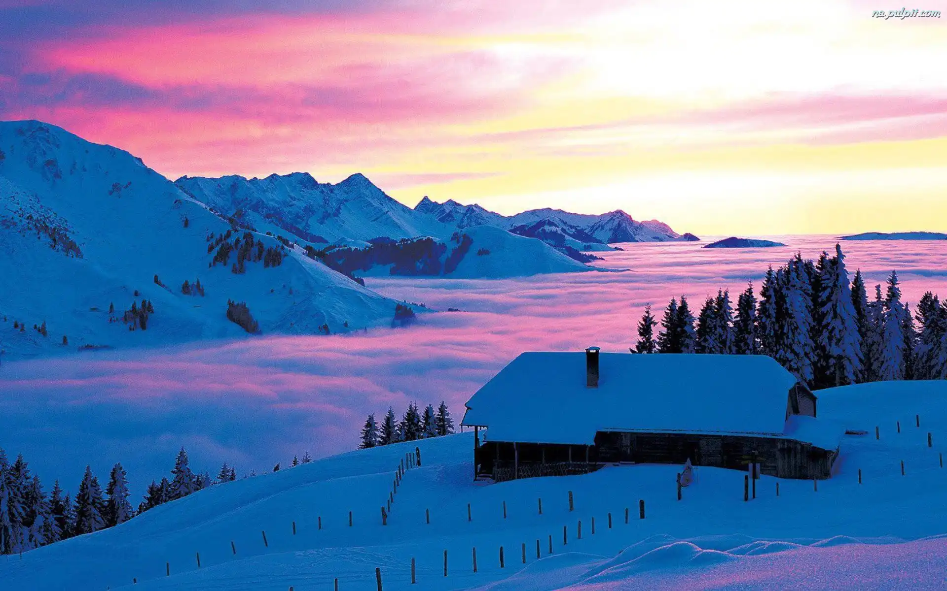 Zima, Dom, Chmury, Góry, Lasy Na Pulpit