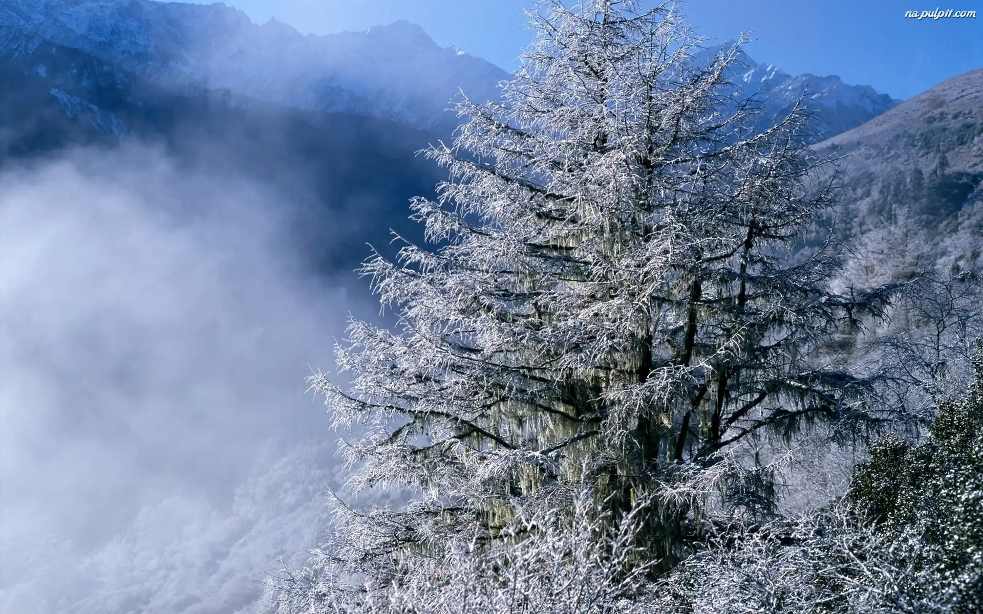 Zima, Drzewa, Góry, Chmury Na Pulpit