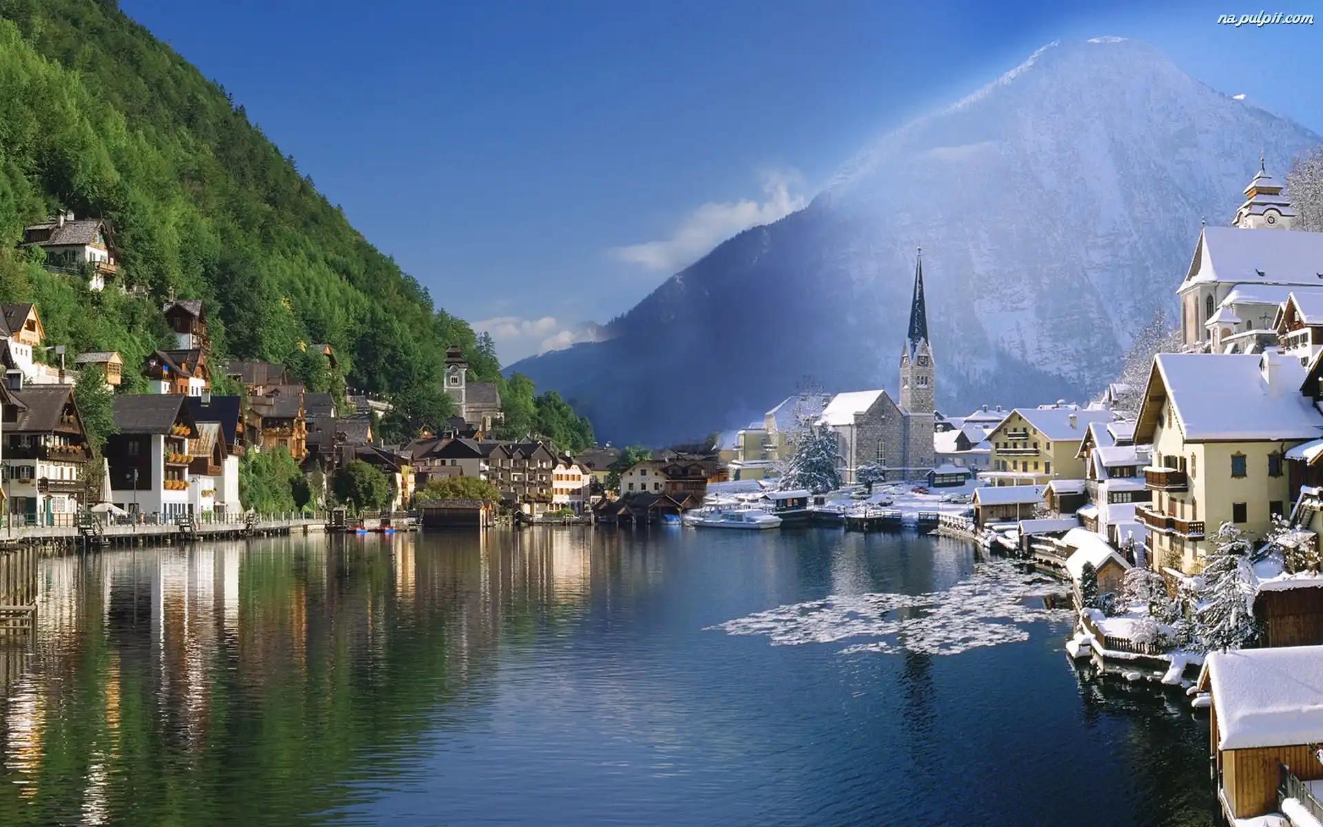 Zima, Jezioro, Góry, Miasteczko Na Pulpit
