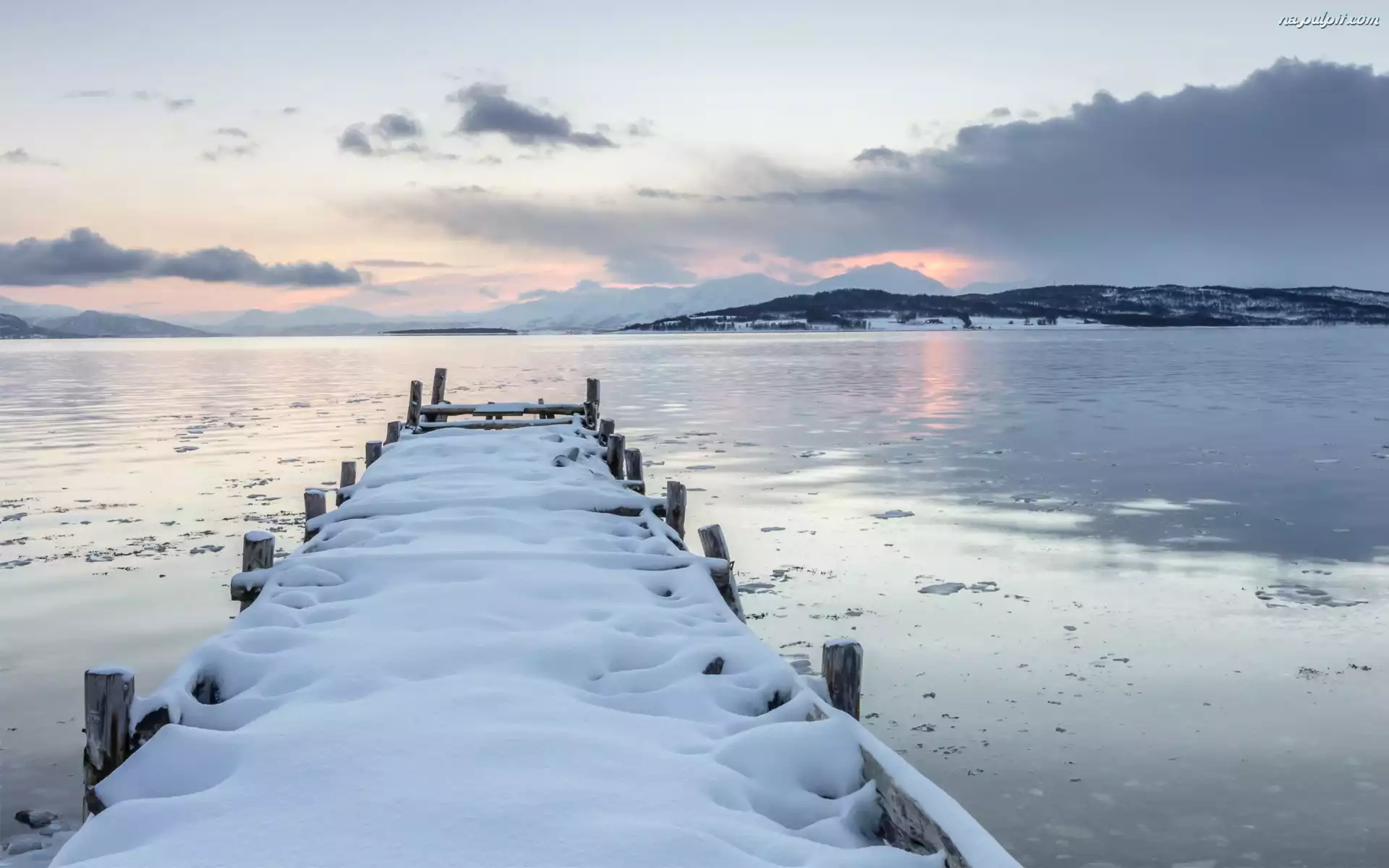 Zima, Molo, Jezioro, Góry, Śnieg Na Pulpit