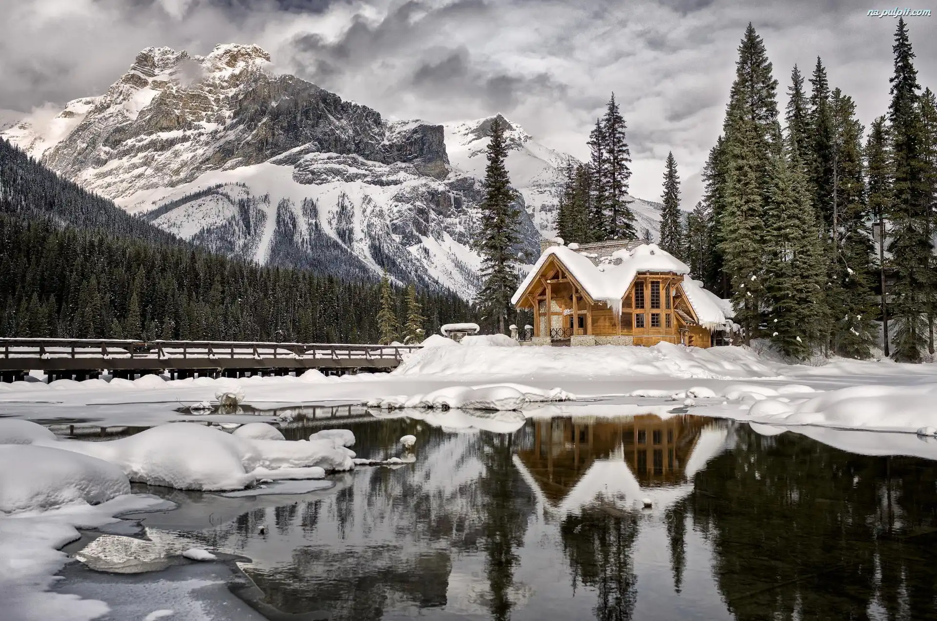 Zima, Jezioro, Las, Góry, Domek Na Pulpit