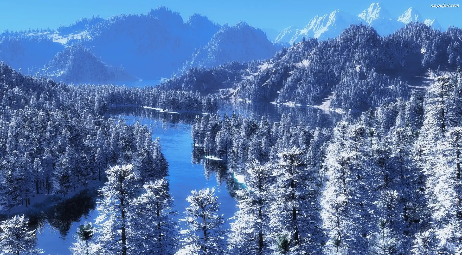 Zima, Las, Góry, Rzeka Na Pulpit