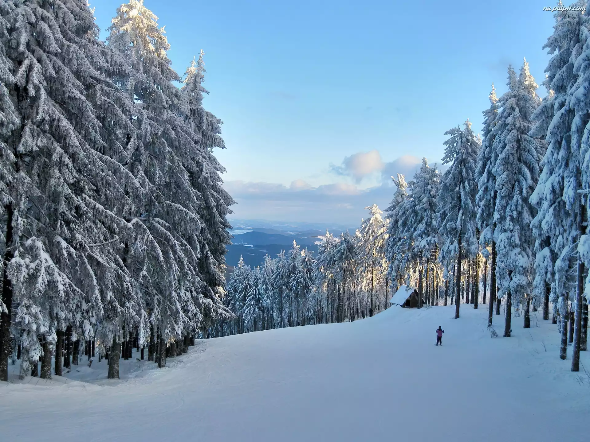 Światło, Góry, Las, Zima, Przebijające