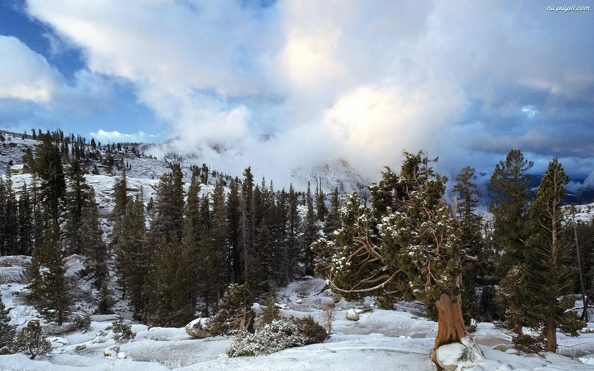 Zima, Lasy, Góry, Chmury