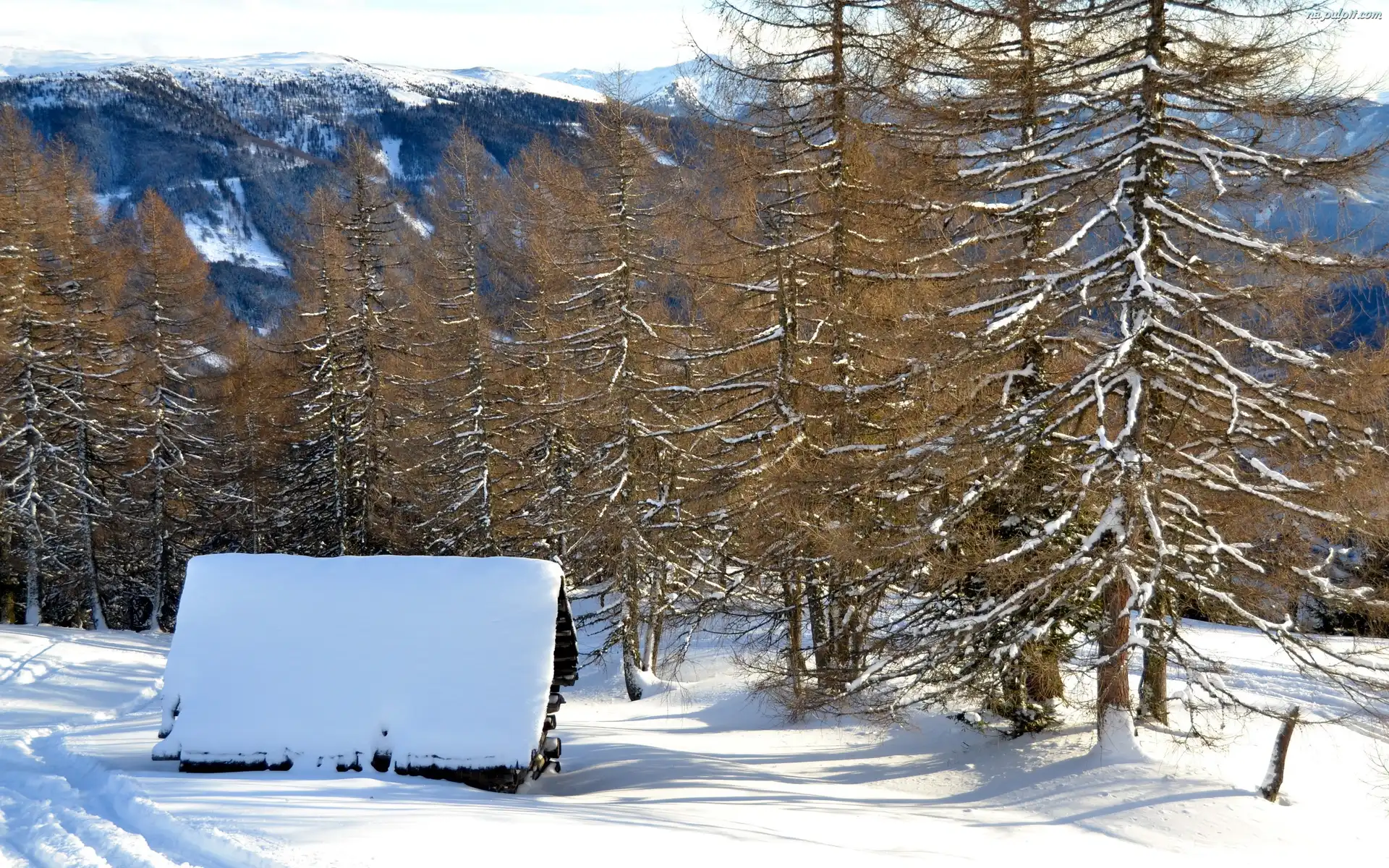 Zima, Lasy, Góry, Szałas Na Pulpit