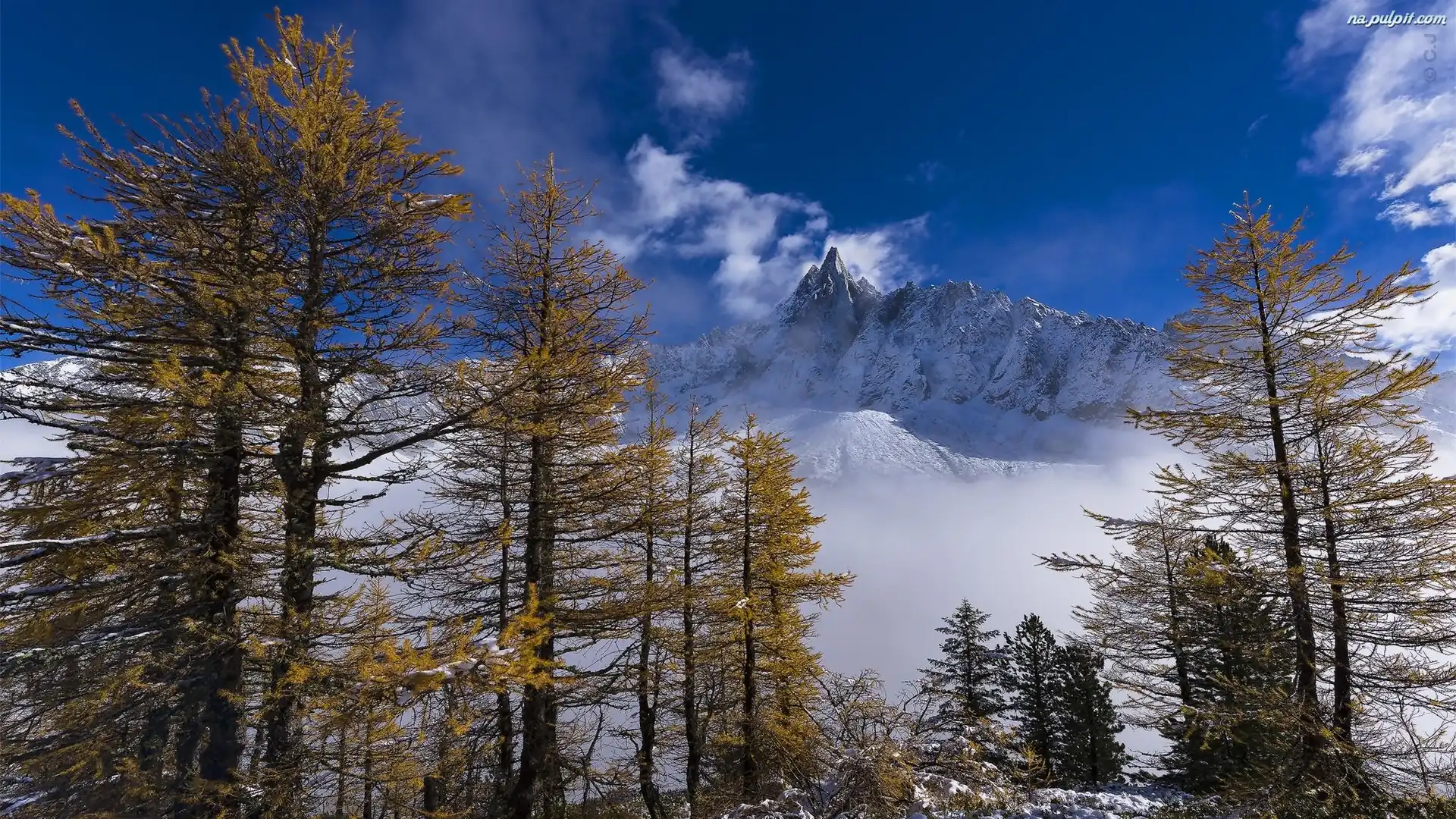 Zima, Drzewa, Mgła, Góry, Chmury Na Pulpit