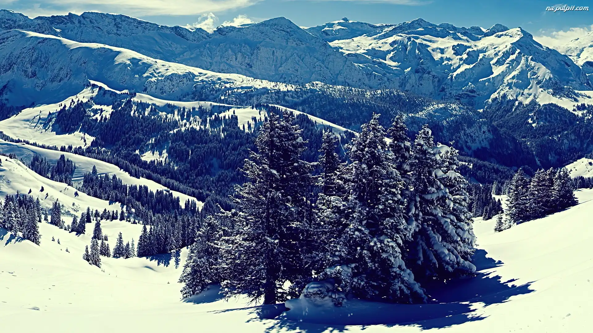Zima, Zbocza, Śnieg, Góry, Drzewa Na Pulpit