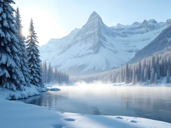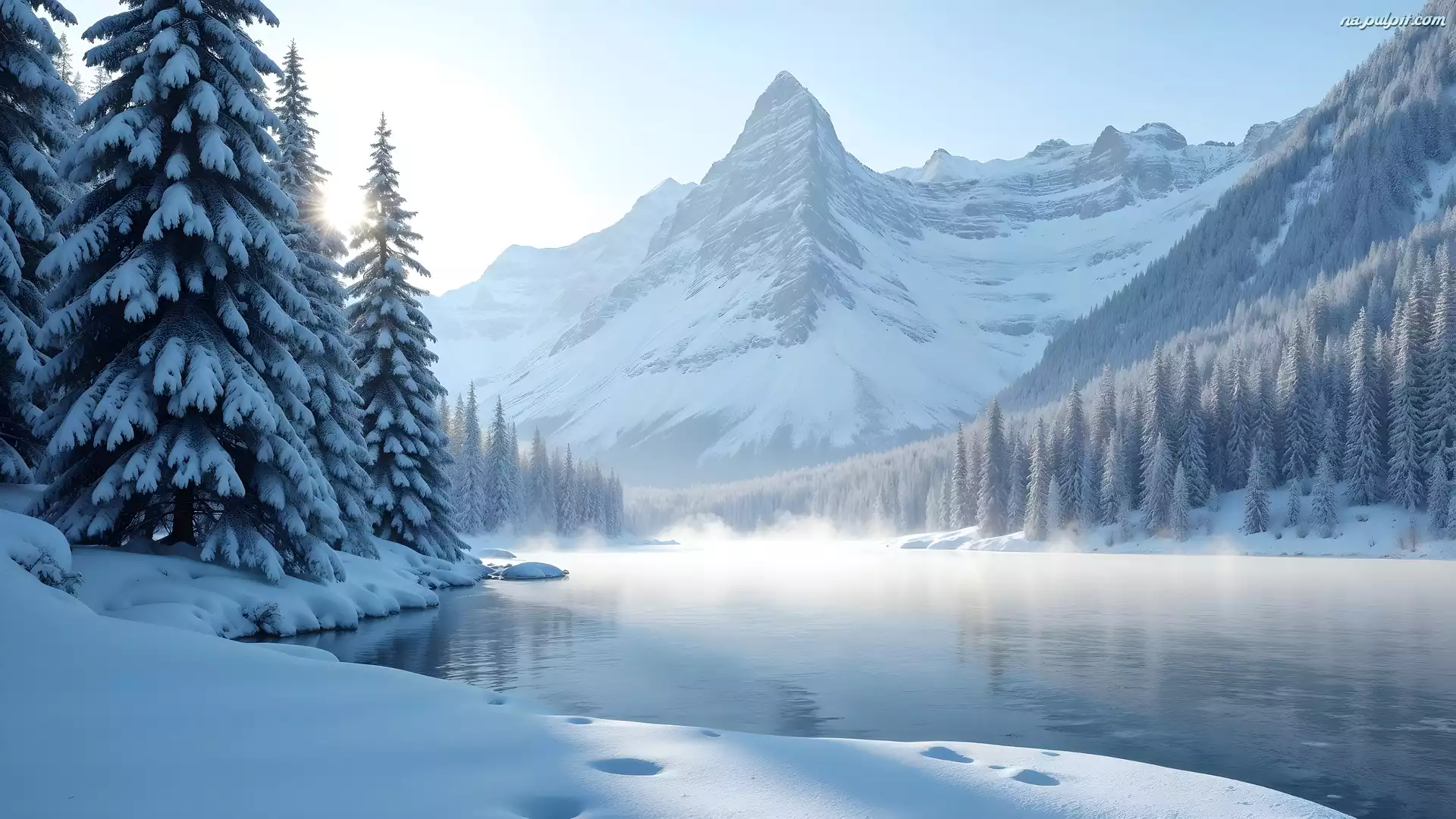 Mgła, Zima, Góry, Drzewa, Rzeka Na Pulpit