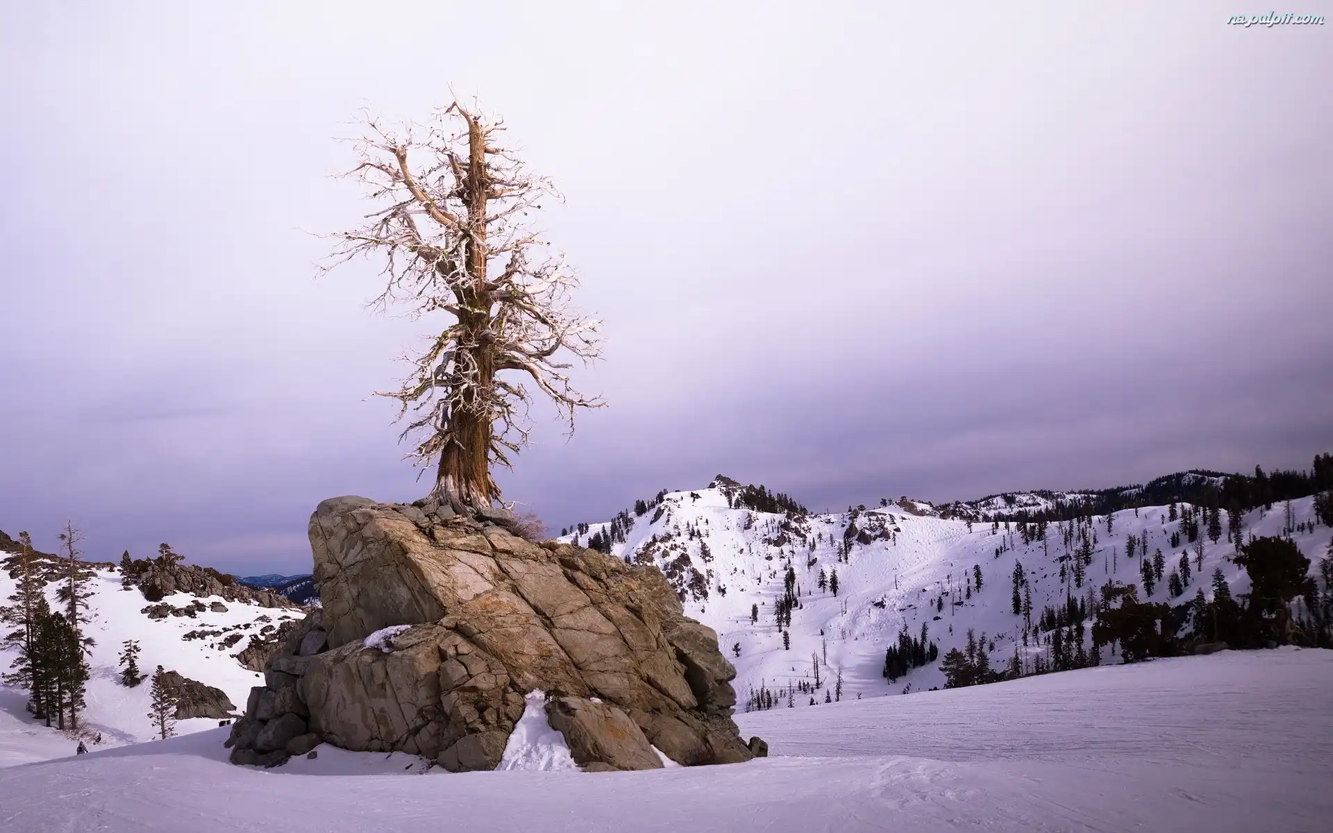 Zima, Skała, Góry, Drzewo