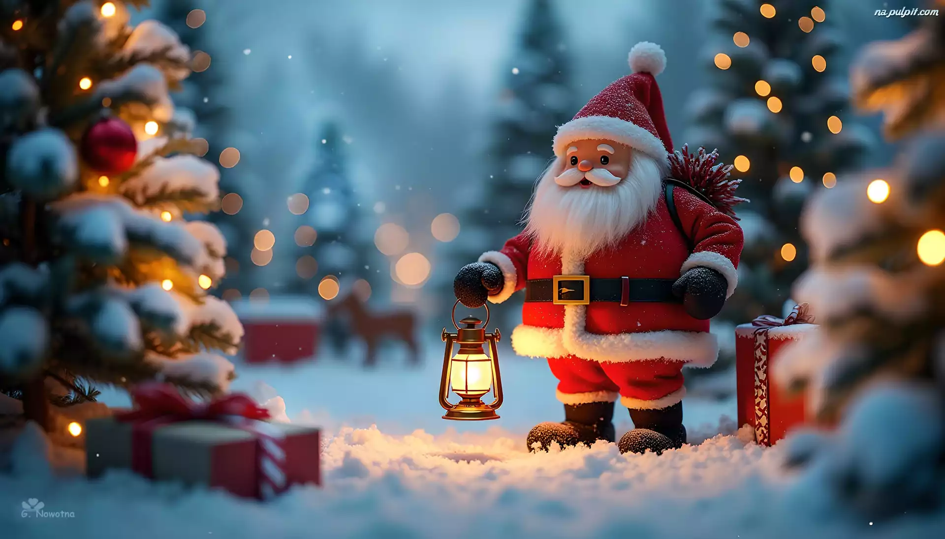 Śnieg, Święty, Lampion, Zima, Mikołaj, Grafika Na Pulpit