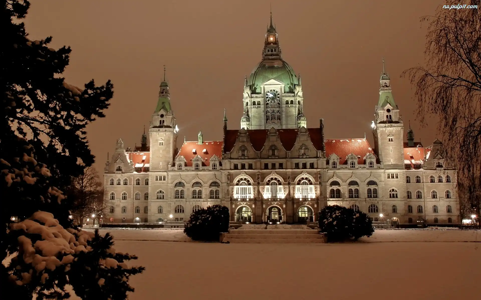 Hanower, Zima, Noc, Hannover, Nowy Ratusz, Niemcy