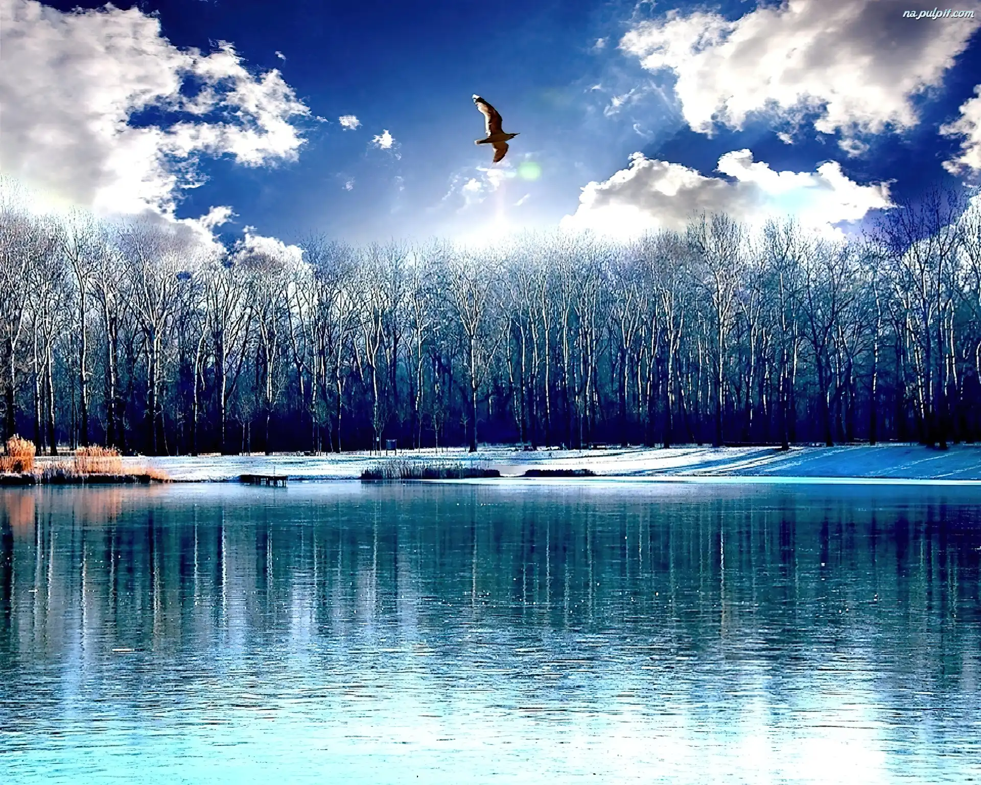 Zima, Drzewa, Jeziora, Parki Na Pulpit