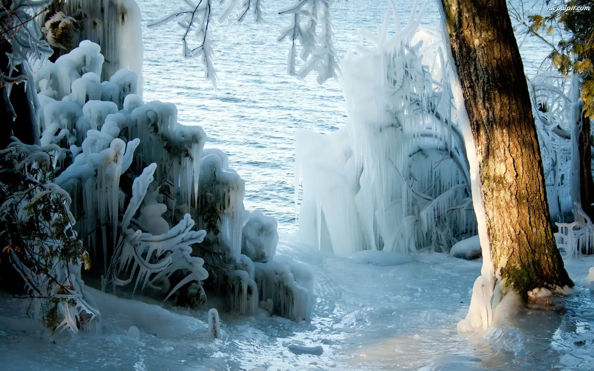 Zima, Krzewy, Zamarznięte, Jeziora, Lód