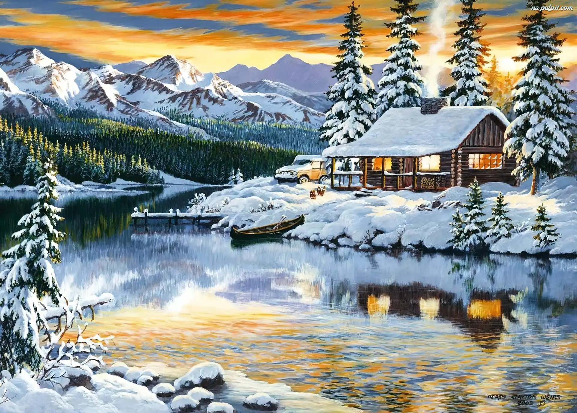 Zima, Dom, Jezioro, Góry Na Pulpit