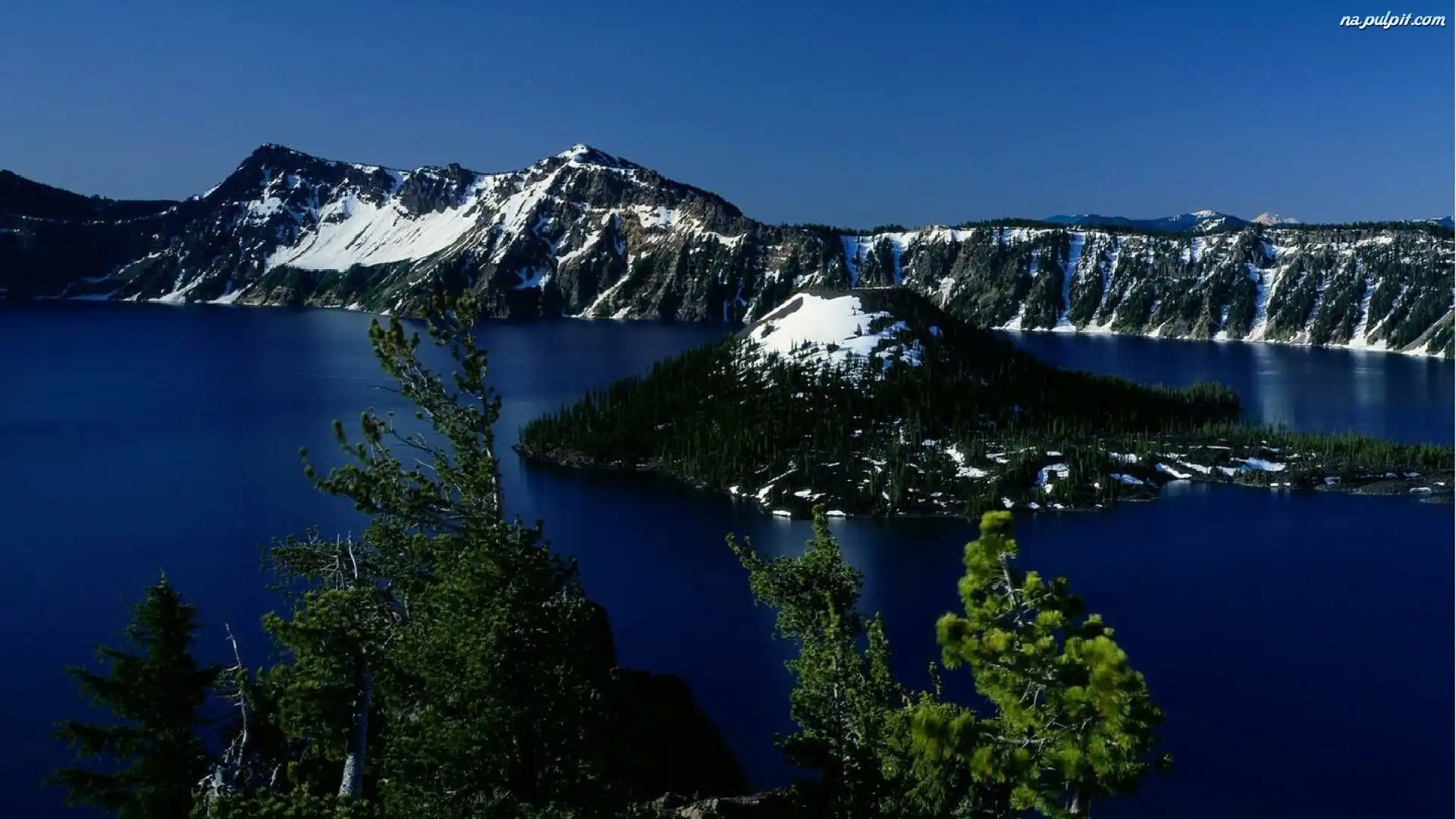 Zima, Wysepka, Jezioro, Drzewa Na Pulpit