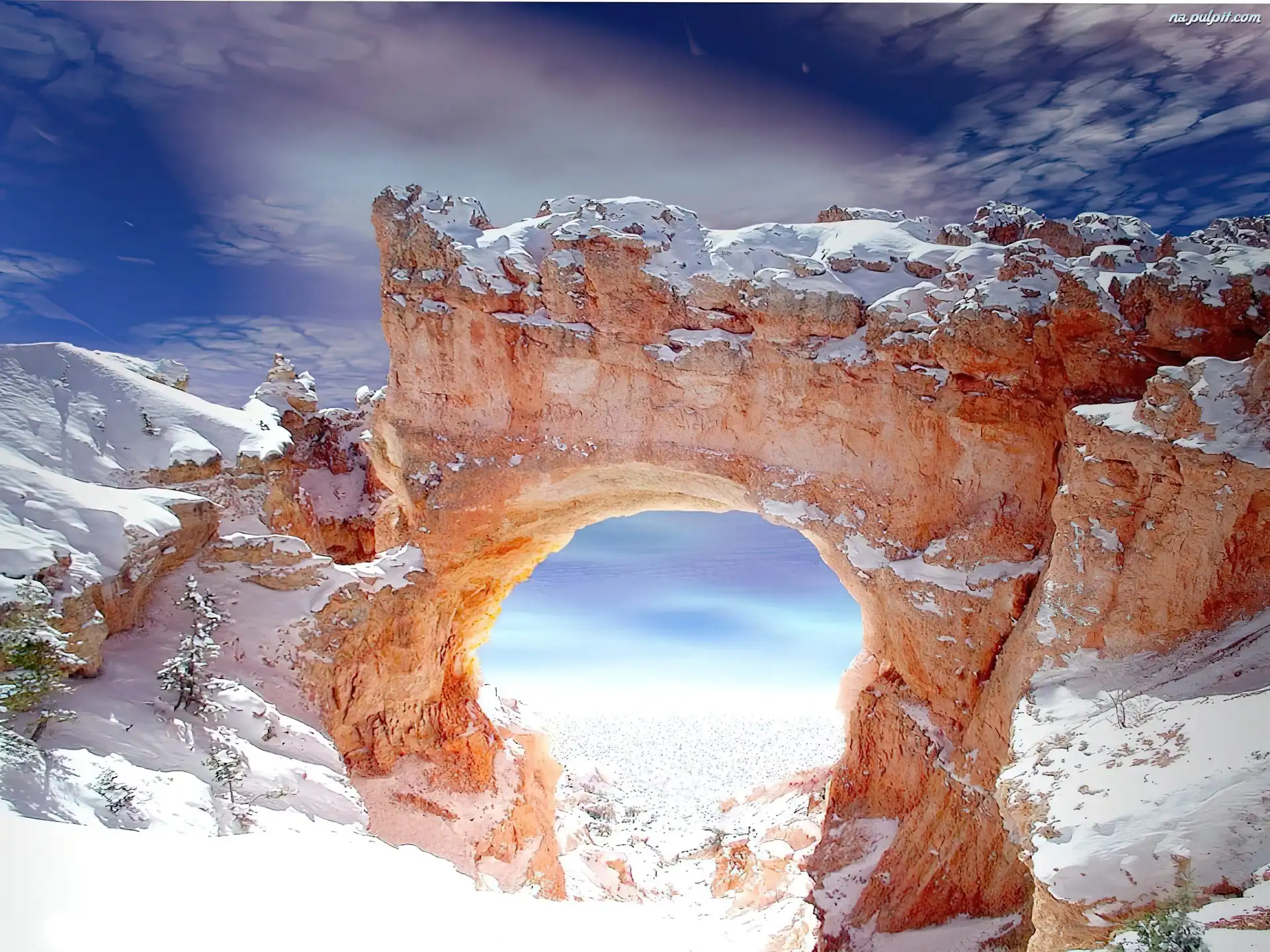 Zima, Skalny, Łuk, Kanion, Śnieg Na Pulpit