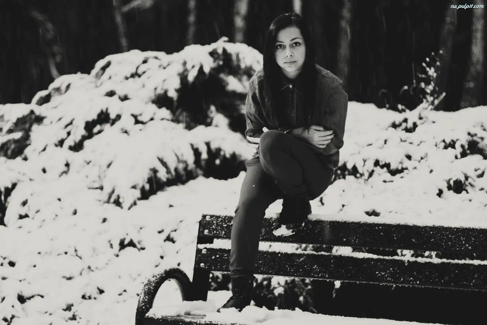Zima, Brunetka, Kobieta, Ławka