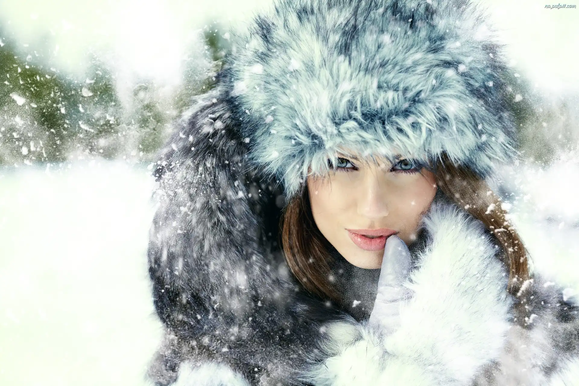 Zima, Czapka, Kobieta, Rękawica Na Pulpit