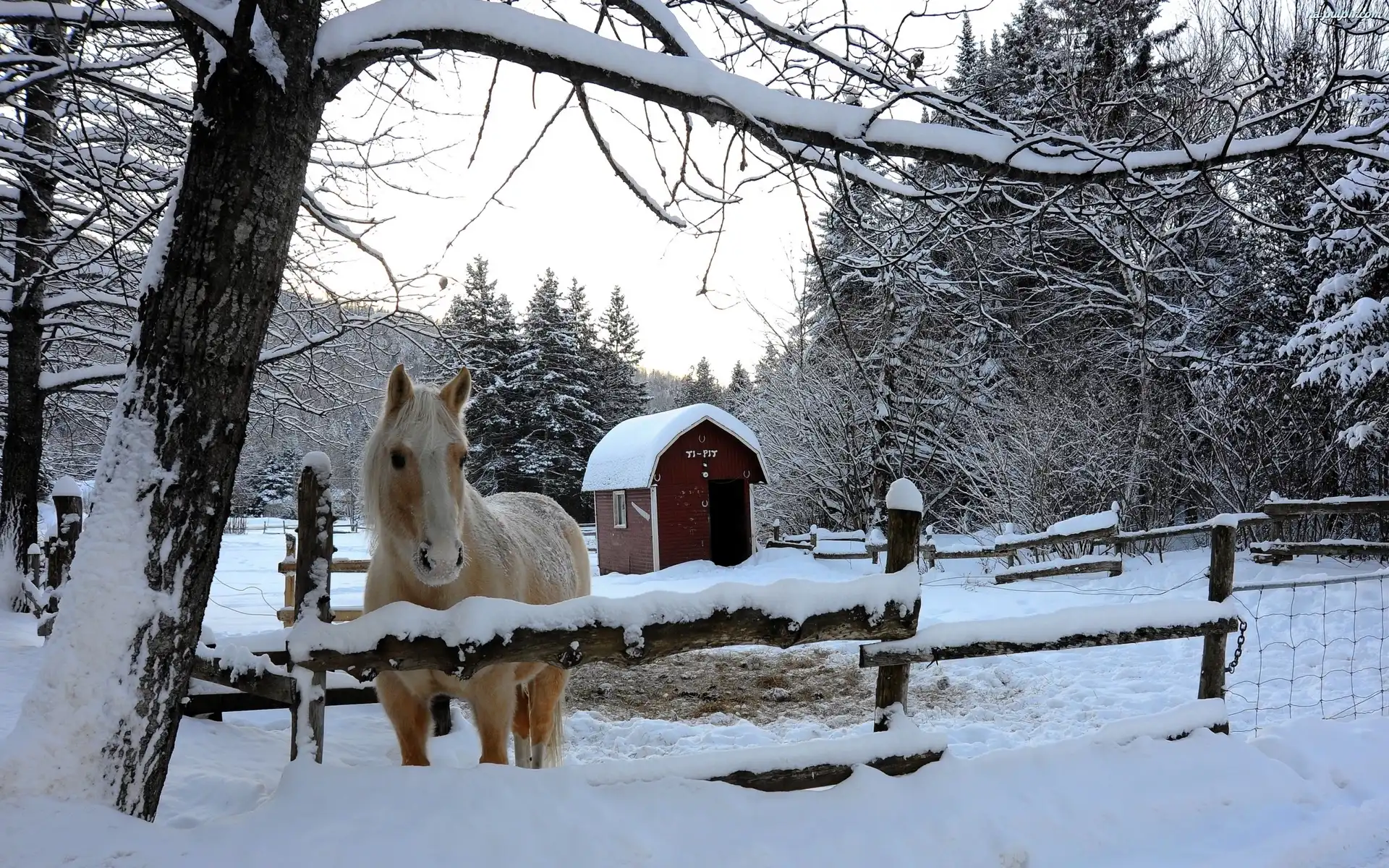 Zima, Góry, Zagroda, Koń, Lasy Na Pulpit