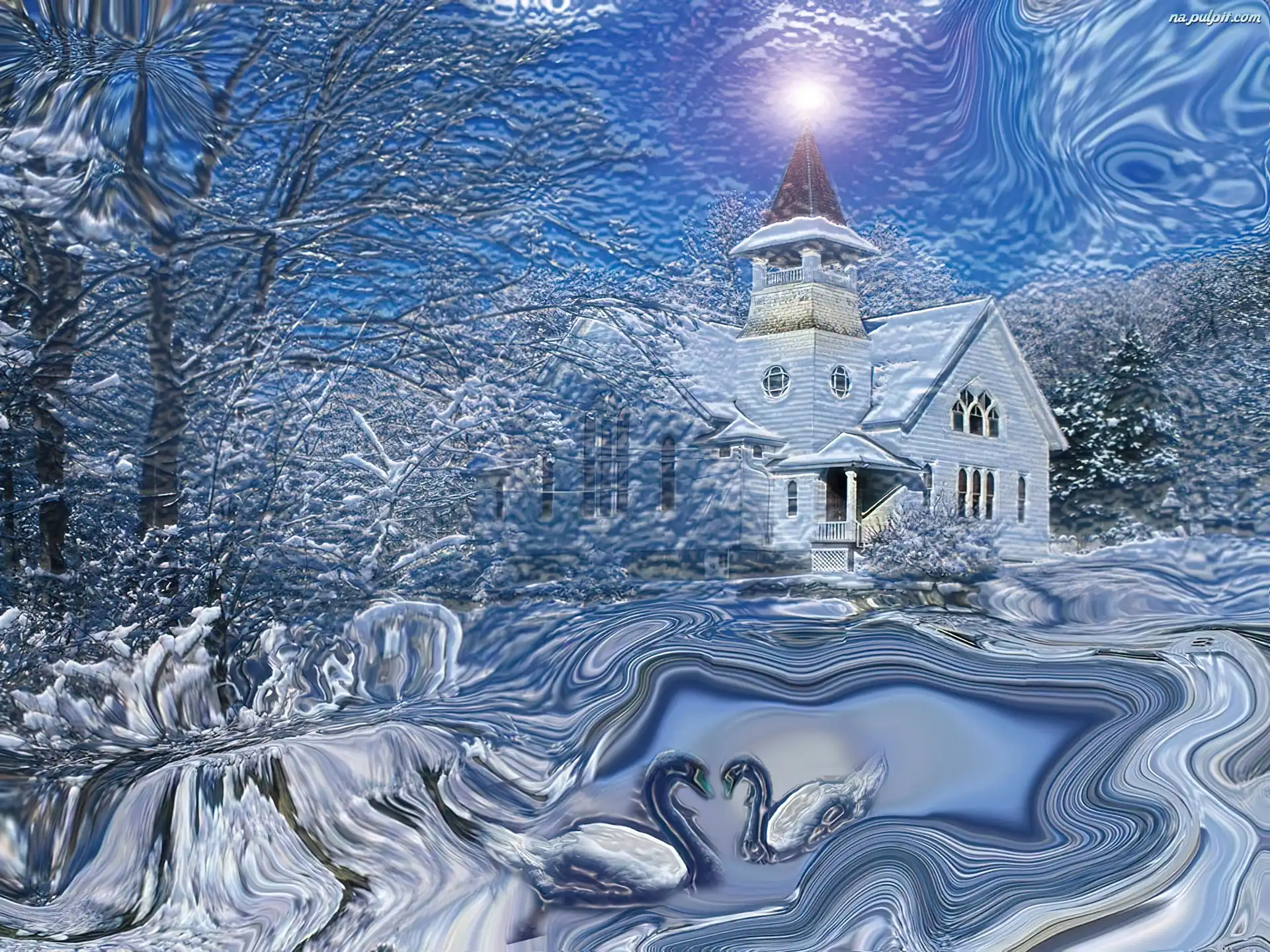 Zima, łabędzie Na Pulpit