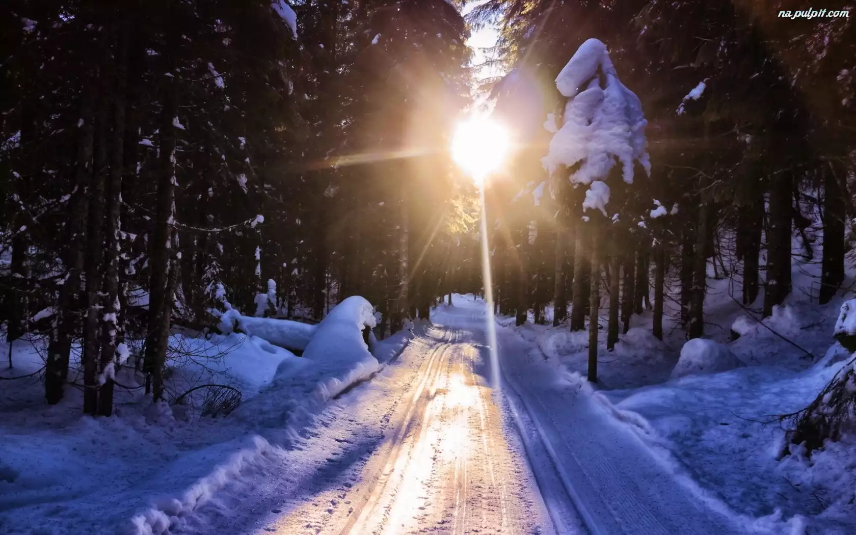 Zima, Promienie, Droga, Las, Słońca Na Pulpit