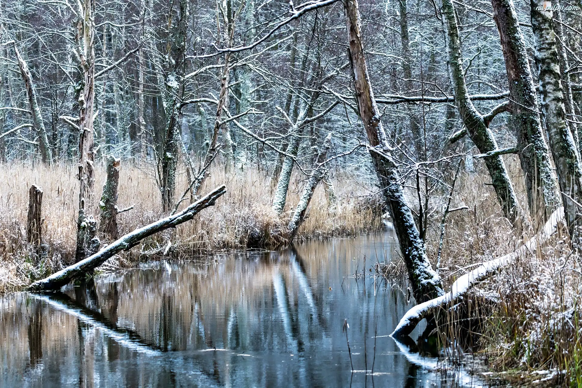 Trawa, Zima, Las, Rzeka, Drzewa Na Pulpit
